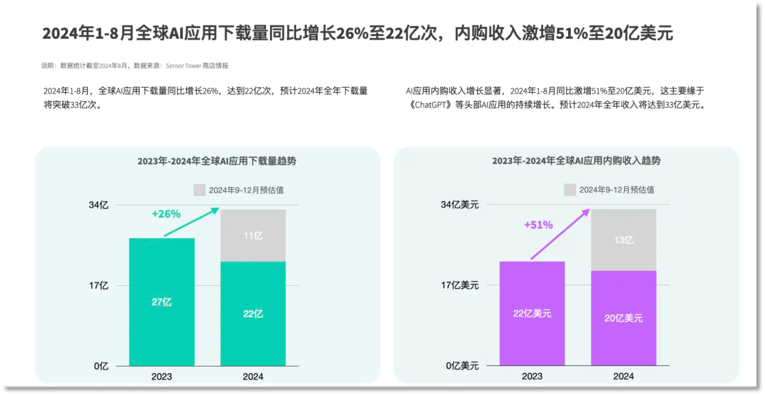 2024年美国AI使用市场上半年下载量数据图片来历:Sensor Tower