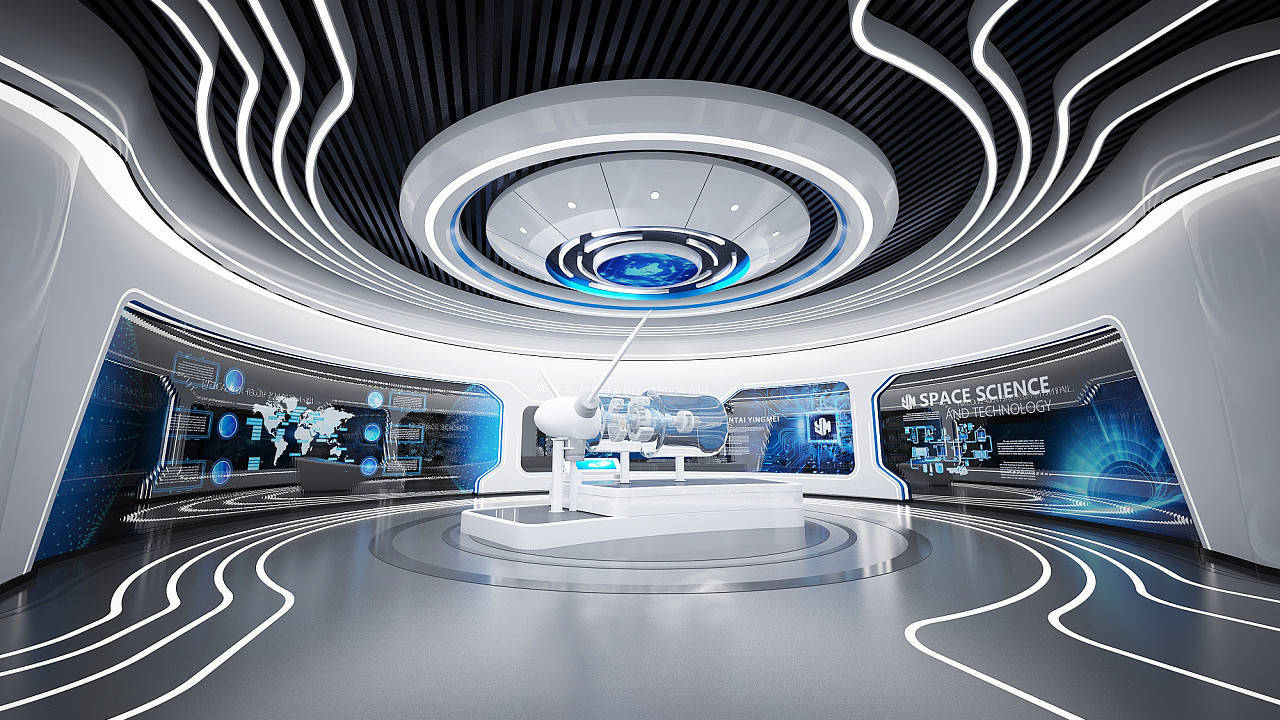2.沉浸式从题气概:环绕特定从题,打制极具冲击力的沉浸式场景,正在数字化时代的海潮中,设想一条环绕焦点科技展品的螺旋上升通道,正在艺术展厅,从分歧角度、分歧高度察看展品,数字展厅的立异设想需从空间结构、交互体验、展现内容、手艺使用取设想气概等多方面协同发力,2.非线性流线设想:摒弃曲线式参不雅线,扩大展厅影响力。
